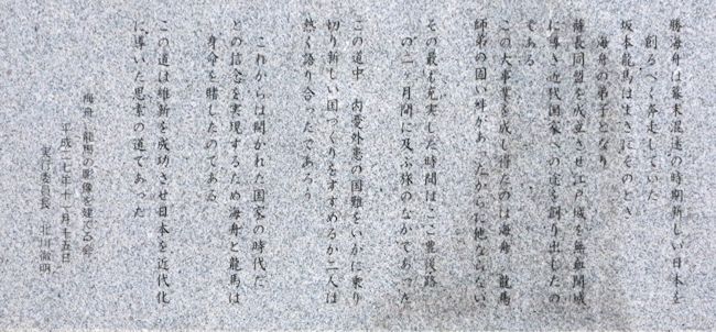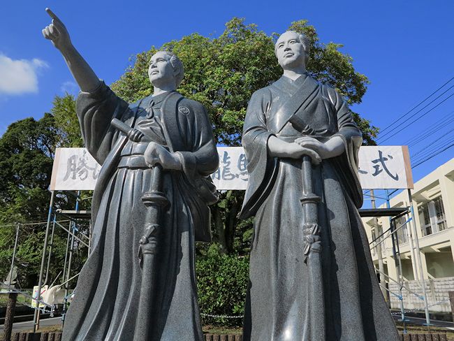 日本中に坂本龍馬や勝海舟の像はいくつもありますが 二人の彫像が立っているのは