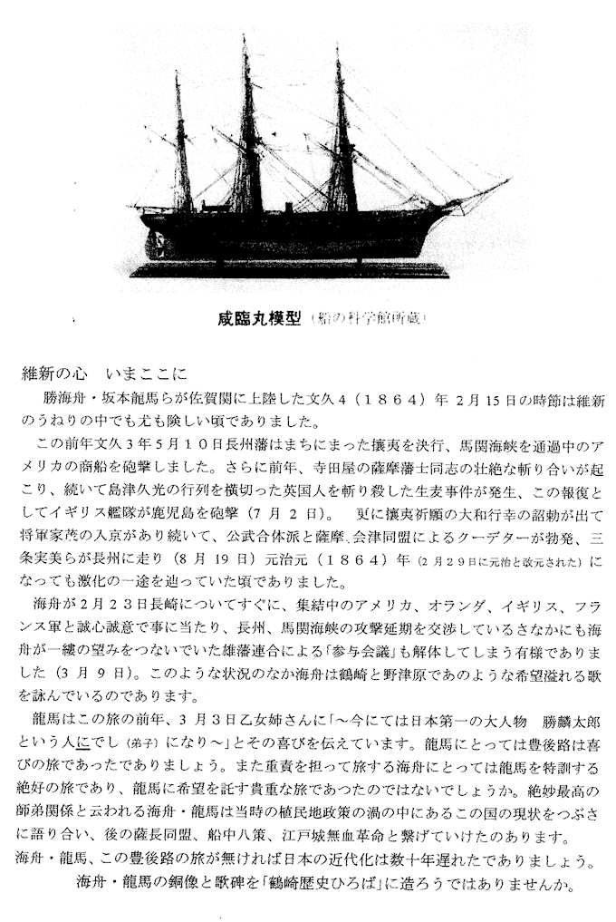 私が自分のホームページ内に「勝海舟・坂本龍馬の彫像と歌碑を建てる会」のページを