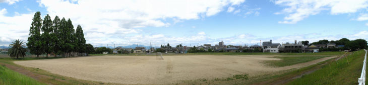 大抵一里半ばかり、川堤に沿うて路あり。街道広く、田畑厚肥、桃菜花盛、関東の三月頃の季節なり。