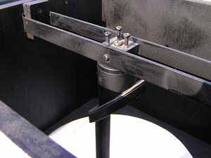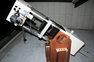 望遠鏡本体が載る架台部分を作って 回転盤の上に載せます 小さな丸い穴は交換用アイピースを 差し込んで置く為の穴です |