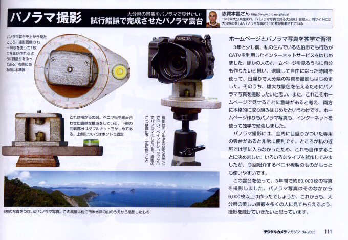 | 今ではオリンパスのデジカメ C-760 Ultra Zoom を2台 同じ板に並べて取り付けて 立体写真を撮影しています オリンパスの利点は パノラマモードがある事です この板をパノラマ架台に載せ 立体パノラマ写真を撮影 但し同時にシャッターを押すのは 結構難しいし カメラの個体差があります ズームは使用せずいつも 42oで撮影しています これだと360度全周撮影可能 丁度10枚で全周になります |