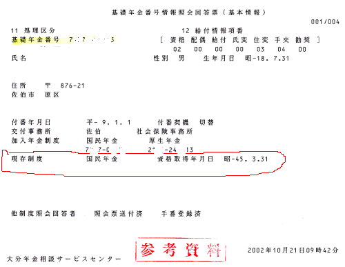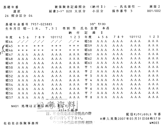 2007年の春 社会保険事務所に出向いて私の国民年金記録を調べてもらったら