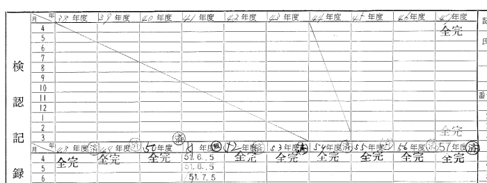 また 裏側の検認記録を見ますと47年〜50年と52年以降は全完の印が1個ずつその年にありますが