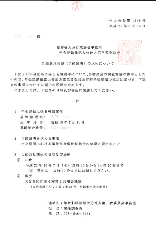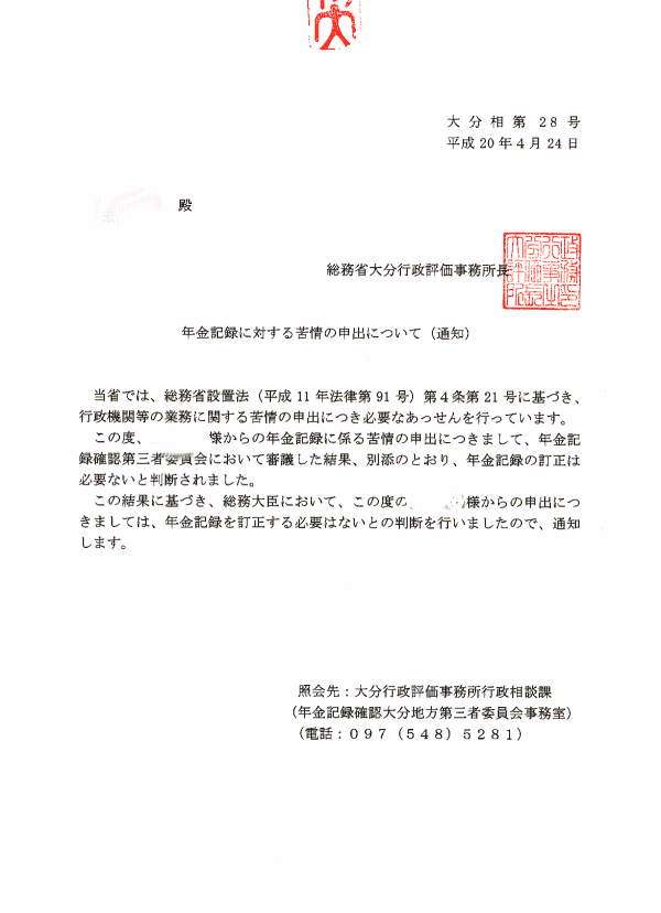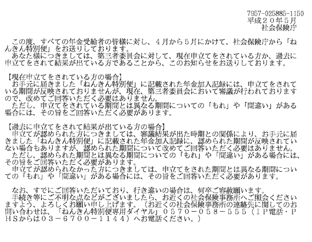 年金再調査の返事が来ました