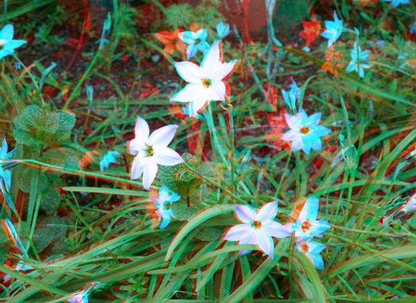 これらの花々の立体写真は近寄って撮影しますから1台のカメラを左右2pくらい動かして