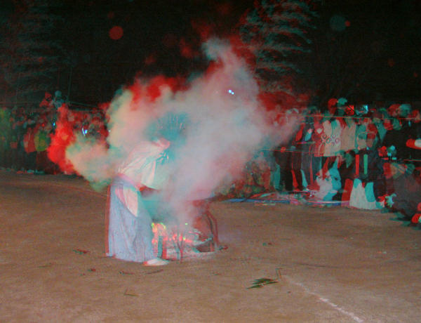 2007年1月13日 佐伯市の大入島中学グラウンドでトンド火祭りが開催されました