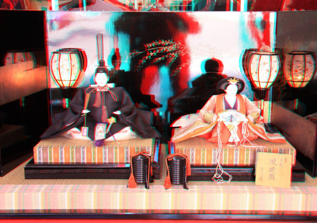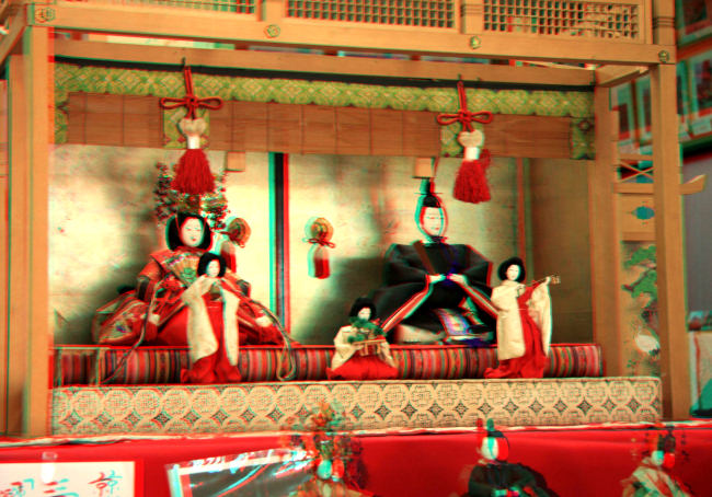 人形もひな壇も赤い色が多くアナグリフ立体写真には不向きですので