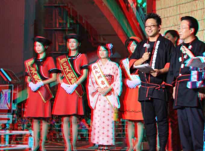 オープンカーで登場した美女は九州各地のキャンペーンガールです。