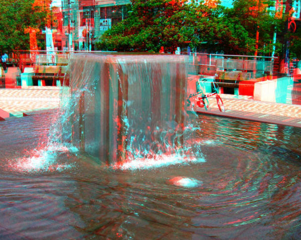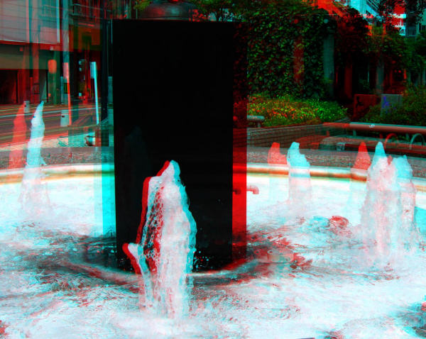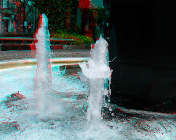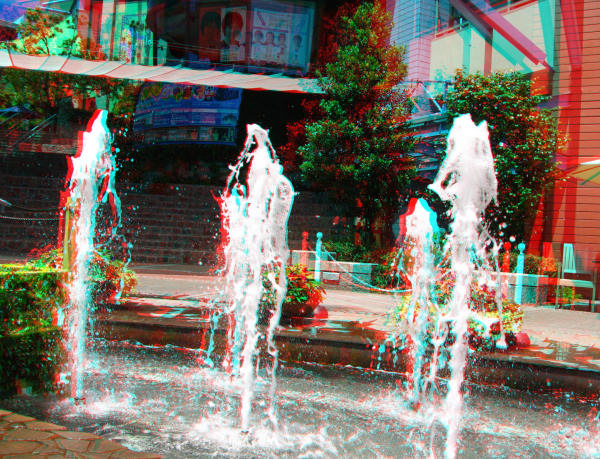 噴水の水や流れる水をシャッター同期の立体写真なら水の瞬間の形を停めて撮影 出来るだろうなと思って 噴水を探しましたが 大分県は面白い形の噴水がありません 大分市の公園などの噴水を立体撮影してみました。