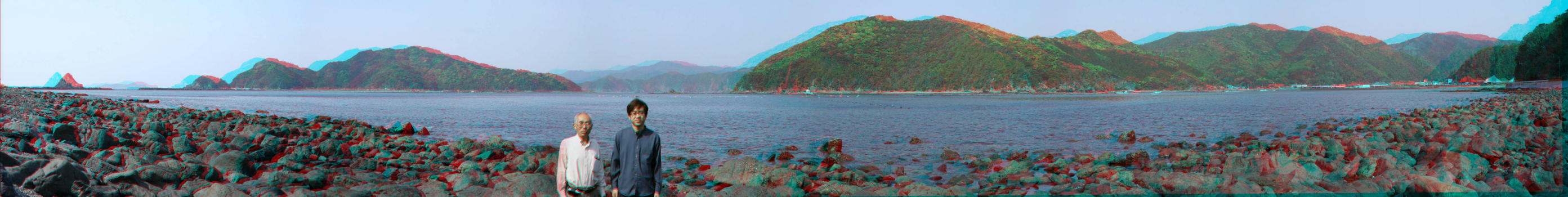 立体写真 蒲江湾の入口付近の海岸で