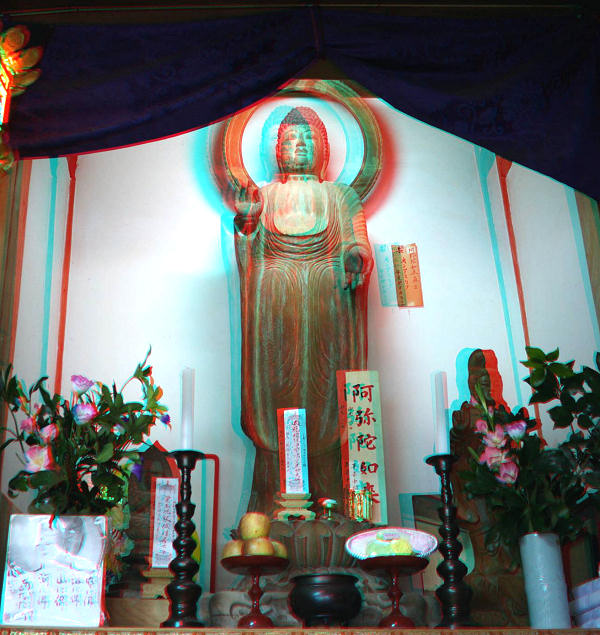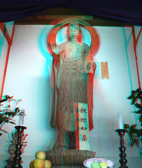 最古の寺です ご住職の許可をもらい特別にこの三尊を立体撮影しました