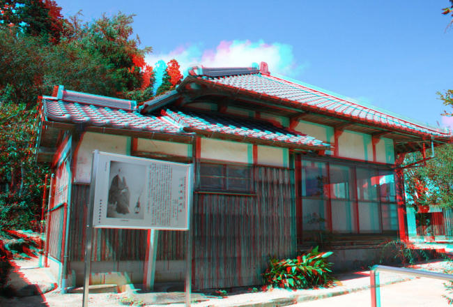 復元された生家 茅葺き屋根が夏でも涼しいそうです 父親は医者だったそうです