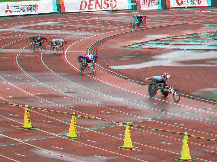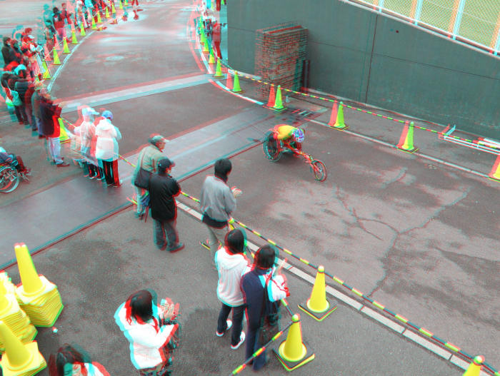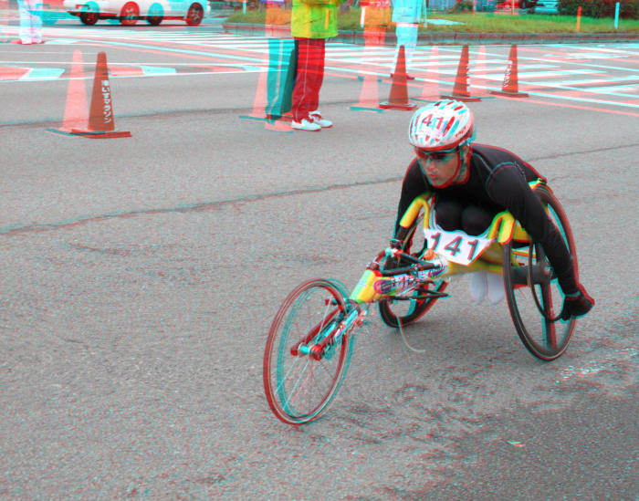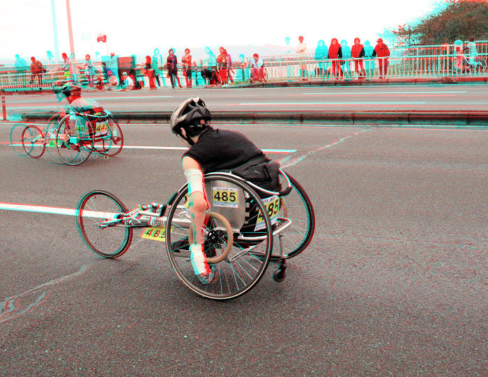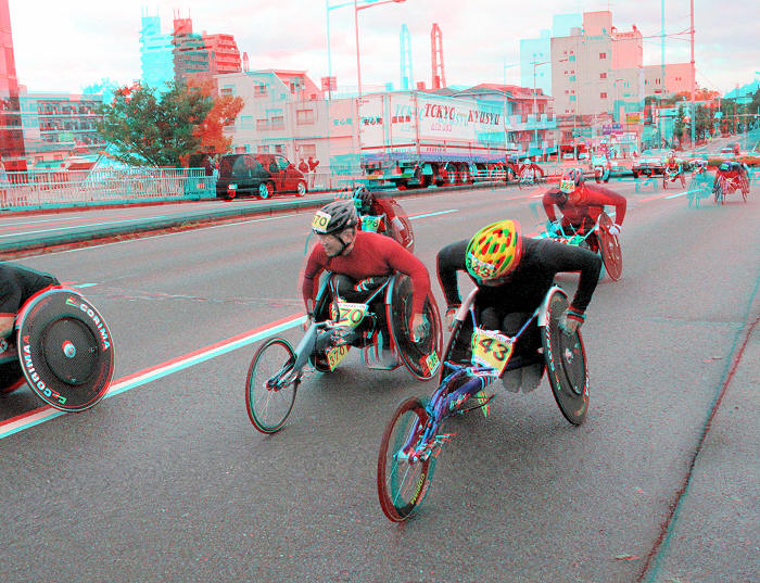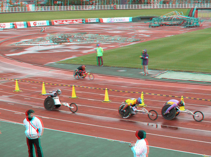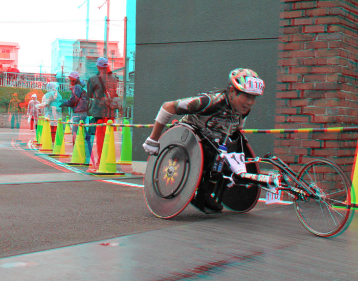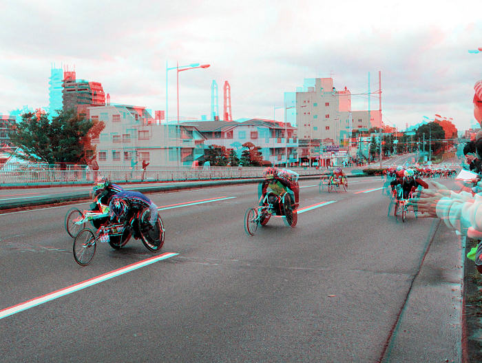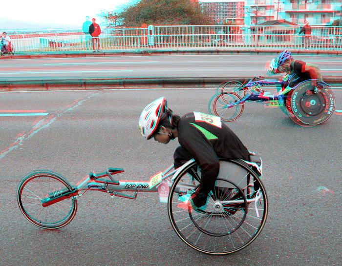 第28回目の大分国際車いすマラソン大会の様子を立体写真にしました。