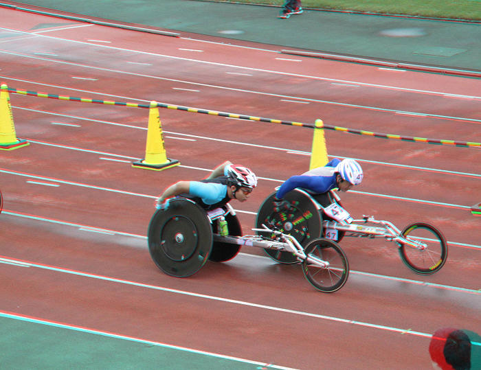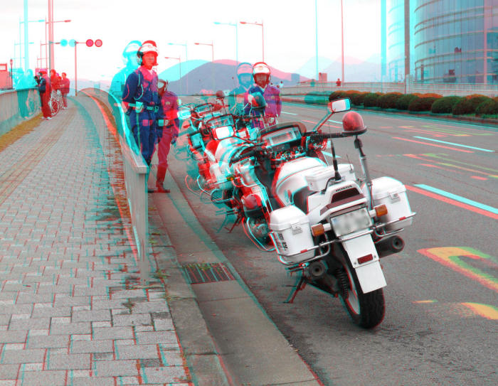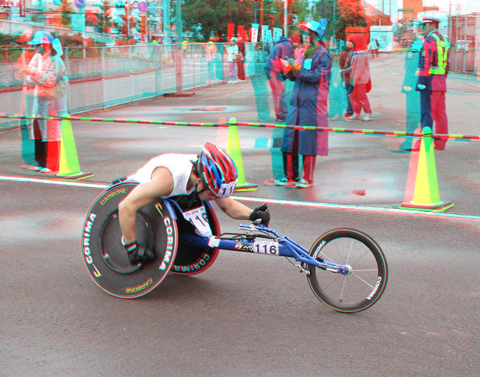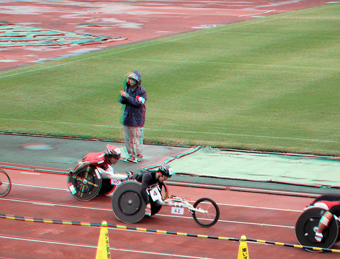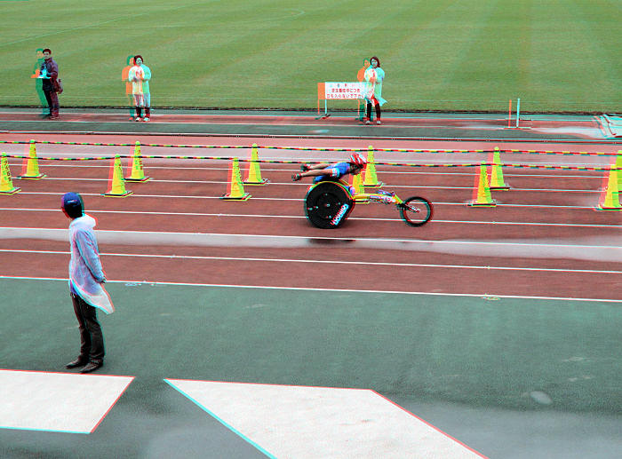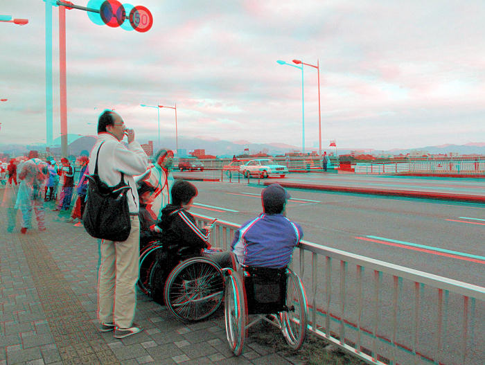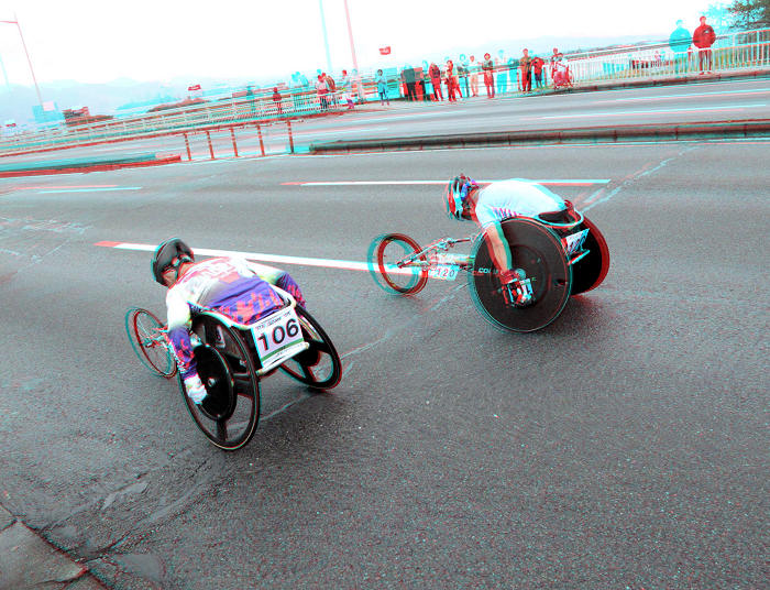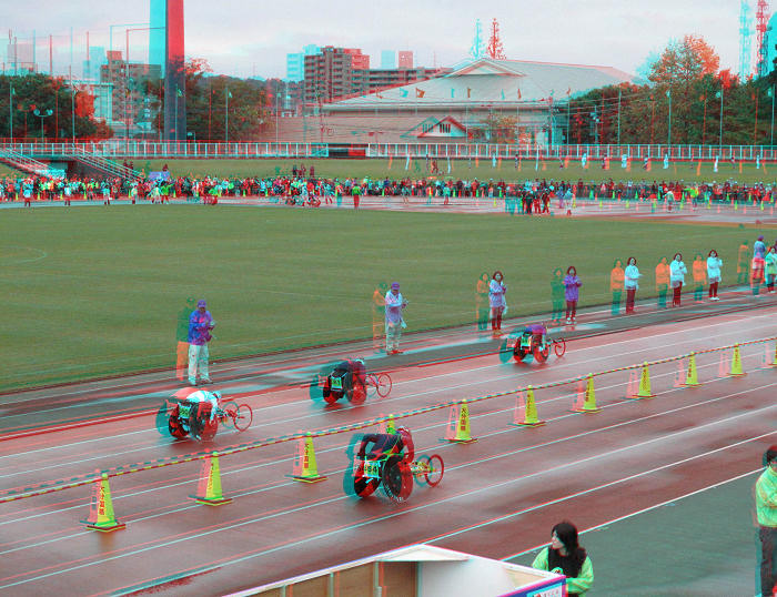第28回目の大分国際車いすマラソン大会の様子を立体写真にしました。