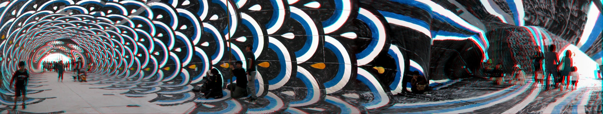 立体写真 ジャンボ鯉のぼりの中をくぐる 2