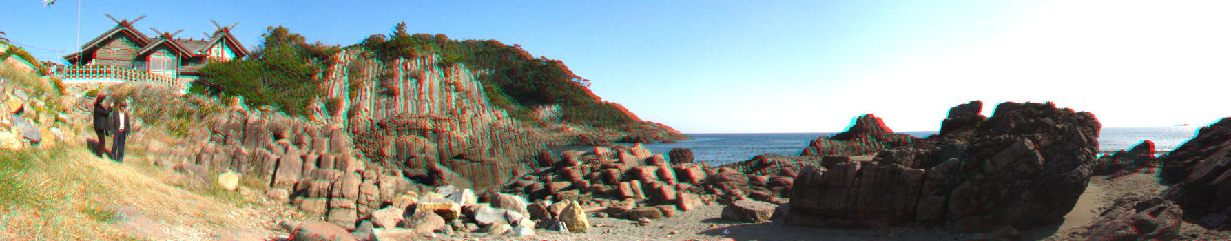 立体写真 大御神神社後方の柱状石群