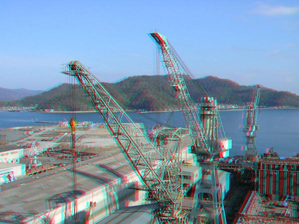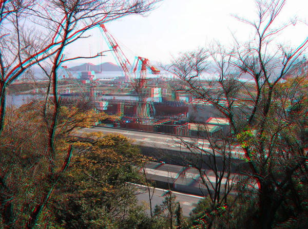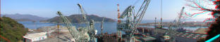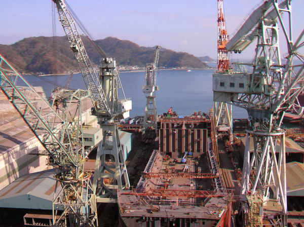 ちょうど佐伯重工業の真上にあたり造船所のクレーンが目の前にあります