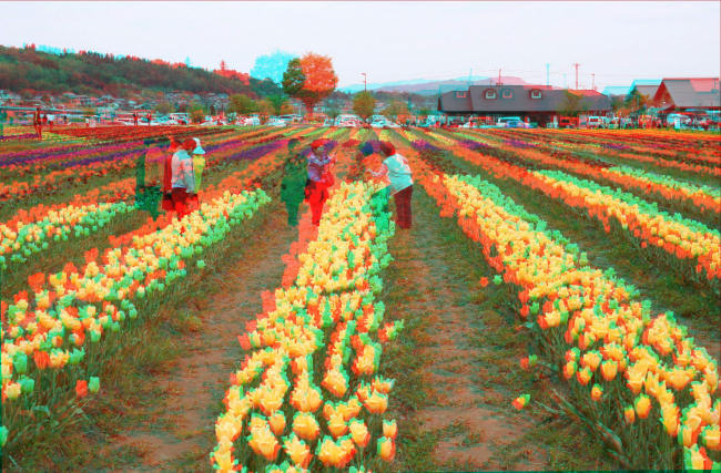 緒方の原尻の滝周辺ではチューリップフェスタ開催中 立体撮影に出かけました