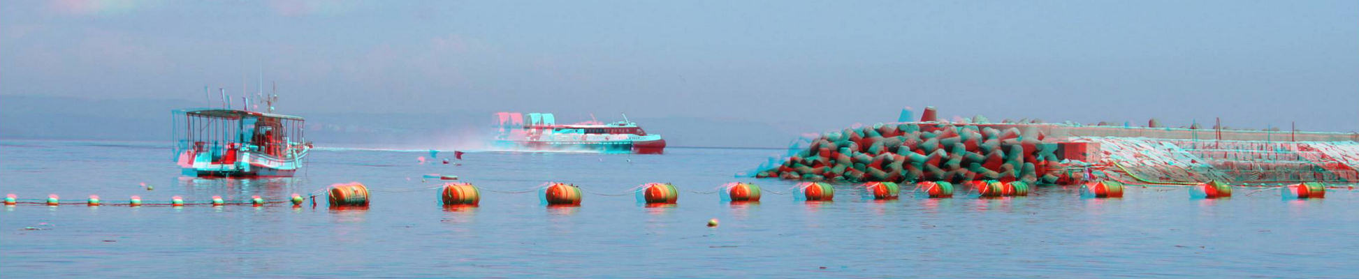 立体写真 田の浦ビーチ沖を航行するホーバー