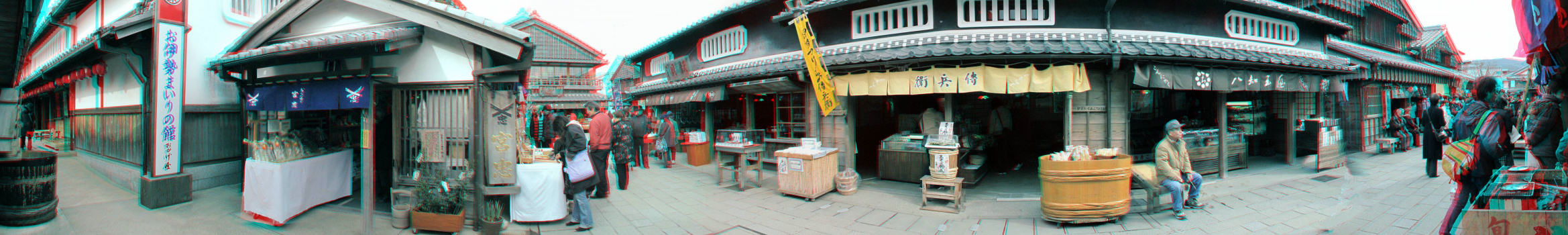 立体写真 伊勢内宮前のおかげ横丁から 1