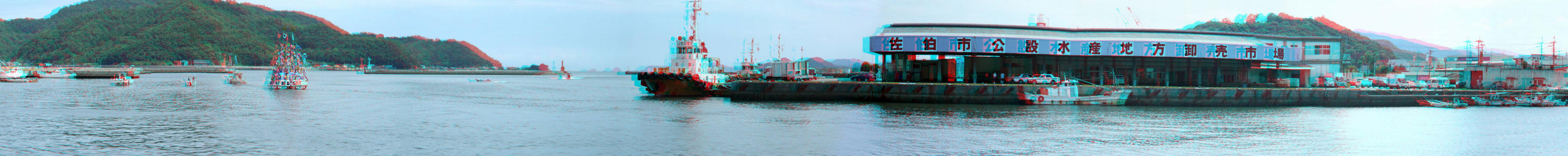 立体写真 佐伯港とジョーヤラ船
