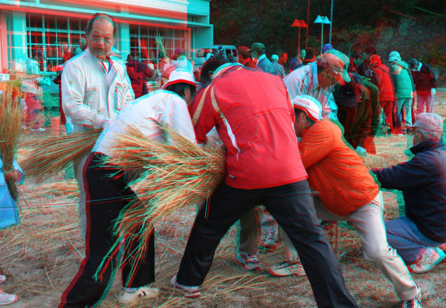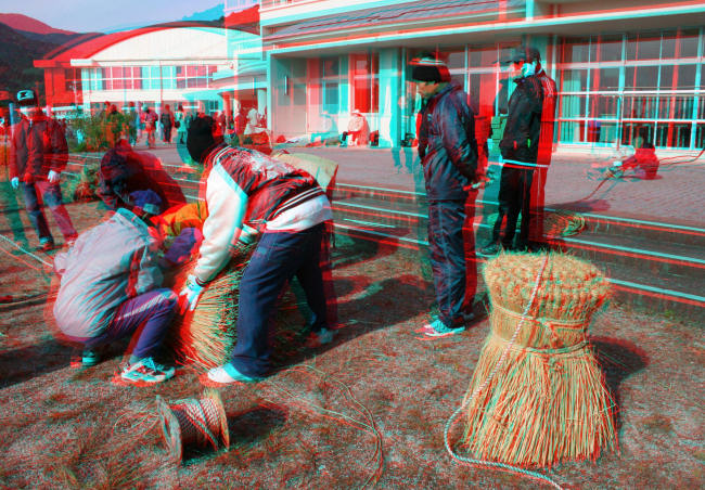 佐伯市上浦町のしめ縄作りを立体写真で紹介します。