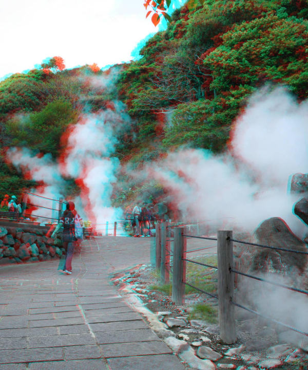 山地獄と鬼山地獄(別名ワニ地獄)を立体写真で紹介します