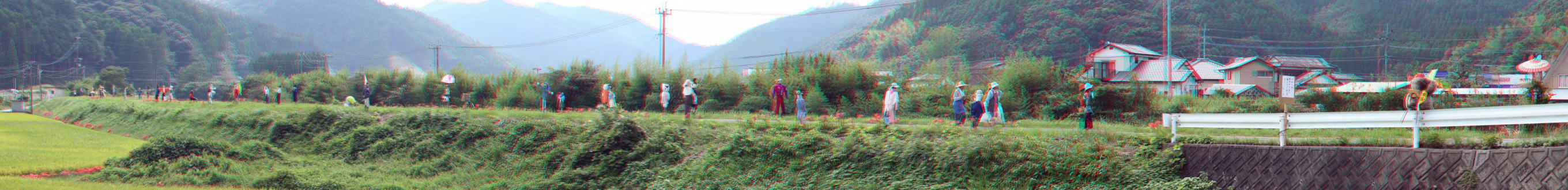 2007年9月26日 土手に人がたくさん? ・・案山子でした 本物の人間も二人歩いています