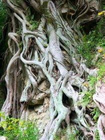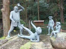公園入り口にある樹齢400年以上のアコウの大木と 地元に伝わる河童伝説の像