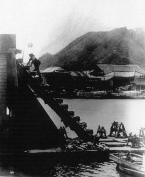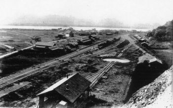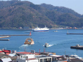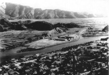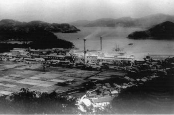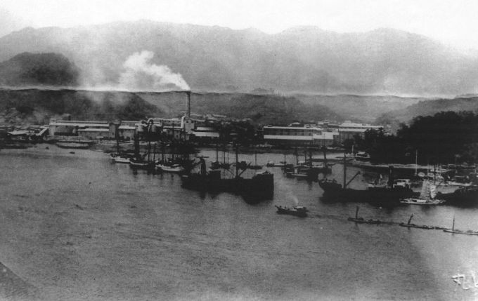 葛港 今のパノラマ本郡の要港なり水深く波静なり大船を泊するに適す東伊予を距る十八里船舶常に幅湊す |