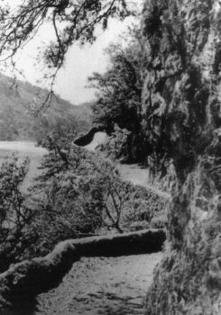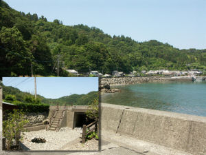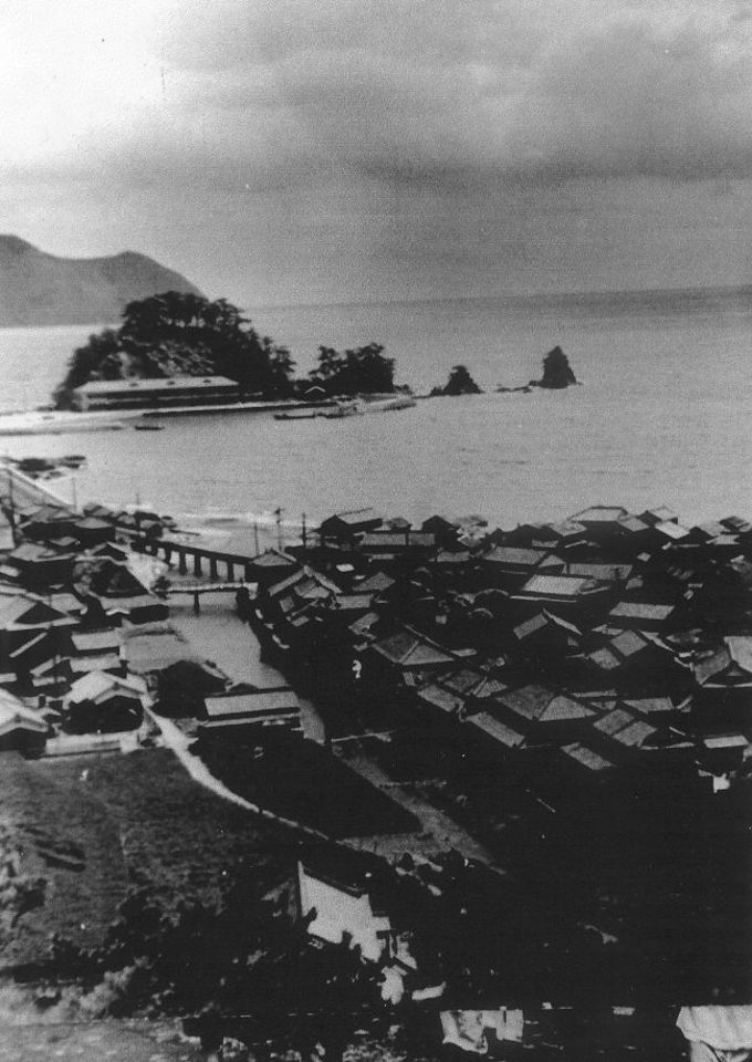 神井 今のパノラマ大入島の東南端日向泊りに在り神武天皇の東征し給ふや波多の浦にて舟導を得て此に泊す此地もと水に乏し天皇親ら弓矢を取り一崖の下に立で給ふ清水忽然として湧出す今に至る迄神井と称し天皇の霊を尊崇すること最も深し |