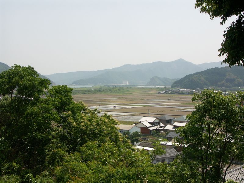天徳寺より堅田の古戦場を望む使を斬るの報に接し島津氏大に怒り一挙栂牟礼城を援んとし天正十九年十一月兵を蒲江の轟峠に進め火を堅田の岸河内に放ち以て武威を示す先陣を城村に後陣を汐月に置く佐伯太郎惟定の客将山田匡得(日向の人)善く兵を用ふ其兵を三分し自ら遊軍となり中山峠より直に八幡山に進め汐月の敵に迫る敵川を越へ江頭に退く別軍は寺田を迂回し宇山の古城址に上り敵を長池に壓す是より先き匡得間道より波越峠に出て擬兵を竹角に出し相応して長池の敵兵を威嚇す敵敗走して普坂峠の半腹に據る城村の敵兵は退て樺ゲ畑(俗云カバゴウチ)に在り因尾の兵之に向ひ鬼が原に敗走す更に兵を整へ進撃して此を敗る痕煙一火遥かに府坂の兵と通し二路相迫る敵軍恐れて長瀬原(俗云千人原)に退く此時我軍敵将其の馬印を得是を立つ敵集り来る我軍直に追撃斬殺算なし敵の残兵わづかに大越を経て遁走す此に依て佐伯全を得たり豊臣大閣爲めに感状を賜ふ後惟定戦死者の爲め塚を府坂峠并長瀬原に建て金剛寺に於て冥福を薦むと云ふ |