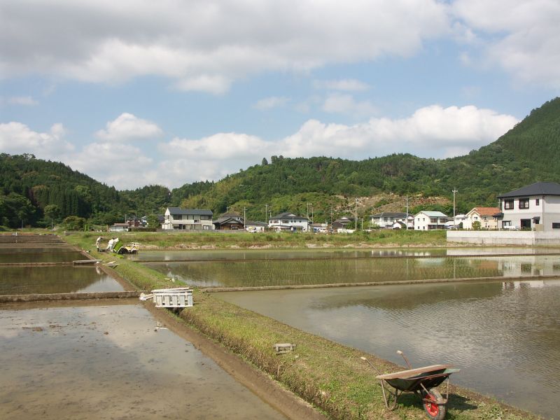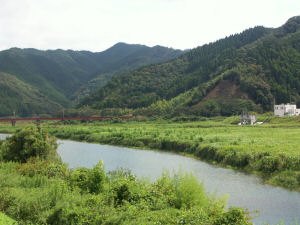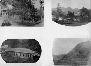 上野村風景遥かに浄土宗岡平山西運寺望む此寺は慶長十二年良意和尚の創設する處なり風景愛すべし 切畑垂簾山十年西南の役賊軍の一隊佐伯より逃れ此山頂に壘を築き暫く官軍を防ぐ所なり 祇園神社 今のパノラマ切畠村江良に在り大同年間の創始祭神は素盞雄尊なり 直見尋常小学校 今のパノラマ直見村に在り |