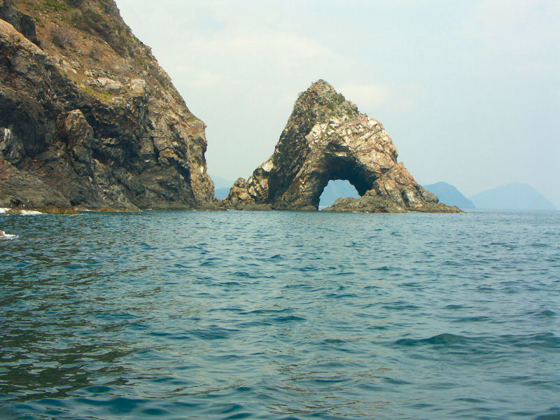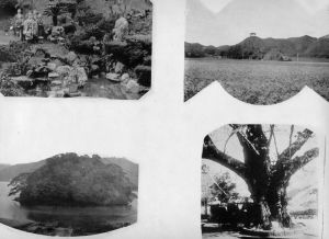 暁嵐瀧 今のパノラマ上浦浅海井村に在り高さ十丈許白龍空に懸り下て深飄と為る絶壁高く従え屹立屏風の如し夏時遊客多し此地薩摩芋を以て名あり 権現島 今のパノラマ大人島荒網代に在り 千両松 今のパノラマ屋島群島中の一小嶼に在り鶴の羽翼を張り一摶正に昇天するの姿勢あり一名を「なんきん松」と称す 群礁 今のパノラマ大入島高松と波太の中間に一直線を畫する点々の島嶼なり |