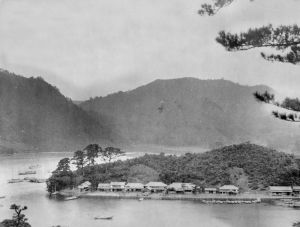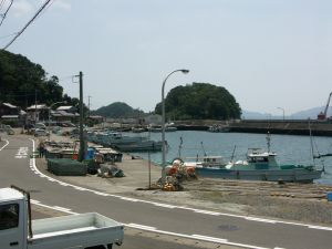 米水津湾湾内屈曲水深し外洋に面して横島あり故に能く風波を避くべし昔景行天皇の熊襲を親征し玉ふや周防より舟を放ちて此所に来泊すと是れ古の水路なるべし其地を宮の浦と称す崇尊するなり三十七八年の役水雷艇隊常に此虞に繋留せり又電信の便あり |