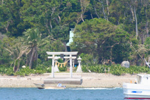 伊勢本神社 今のパノラマ下入津村波多の浦に在り伝え云ふ神武天皇の東征し給ふや舟師を此浦に泊し前途を祝し玉ふと今の御神體は古代の土器なり 宮の浦 今のパノラマ米永津湾の一部なり景行天皇の熊襲を親征し給ふや周防国佐婆津より船を放ちて海部の宮の浦に渡り泊し給ふと是れ古代の海路なるべし里人尊崇して宮の浦と称す 粟島 今のパノラマ米水津に在らり例年正月十六日群参せり 屋片島 今のパノラマ蒲江湾の前方に在り風景絶妙なり |