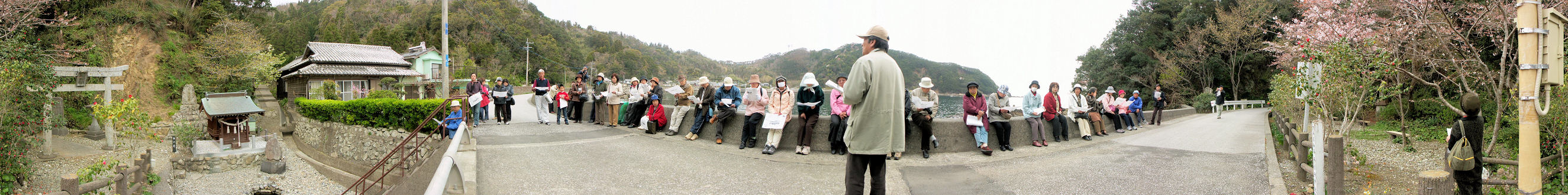 神の井前で塾長佐藤巧氏のお話を聞く参加者