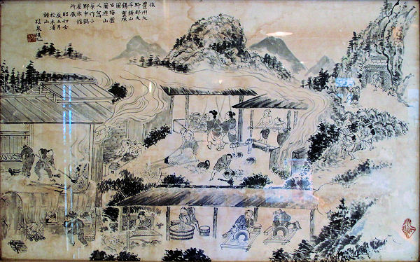 かっての木浦鉱山の様子を描いた絵