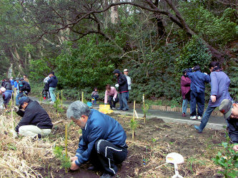 松を植樹してくれたらこの石をくれるという事になりました 間越の潟湖周辺に100本の松の苗を植えました ![]() |