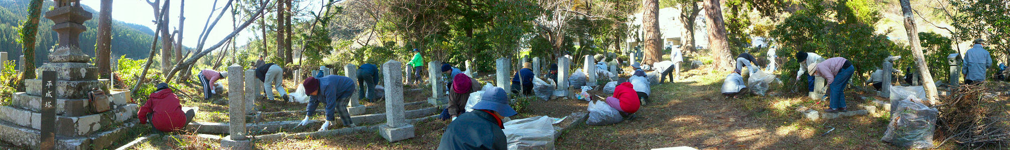 岡の谷招魂所にて草取り作業