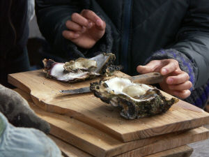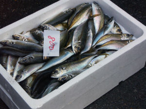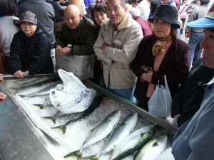 間越の朝市 「来だんせへ市」の様子 朝獲れたての魚が買えます