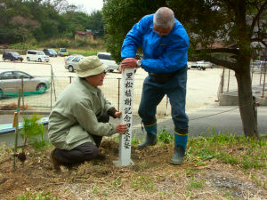 パノラマンも植樹しました それぞれ自分の名前を支柱につけます