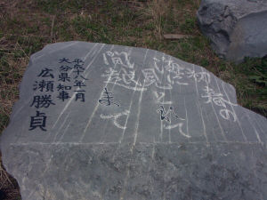 石は津久見の石灰岩だそうです 見れば彫りかけの大分県知事の歌もありました