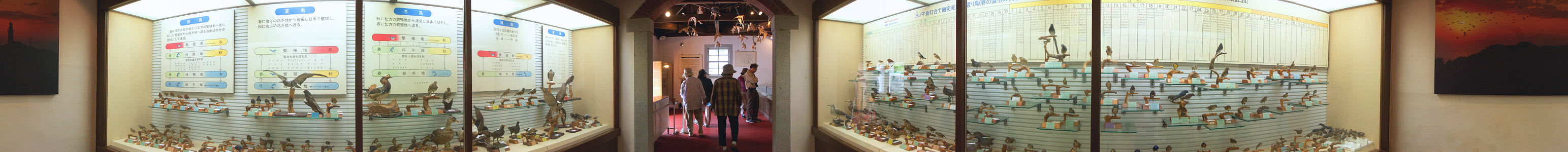 この「渡り鳥館」には、昭和38年から昭和59年までの22年間に水の子島灯台に衝突して 死亡した渡り鳥を剥製にして紹介しています。 日本の灯台で衝突死の起こる灯台は水の子島灯台だけですが、昭和60年から灯台は 無人化されたため、衝突死した鳥の回収が出来なくなり貴重な学術的資料です。