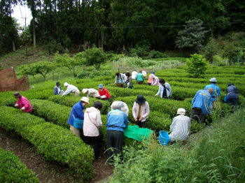 9時30分 〜 小川分校跡地隣の茶園で「茶摘み体験」