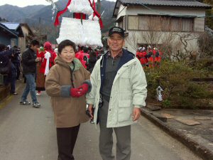 大太鼓は青竹にくくりつけ かついで家々を廻ります
