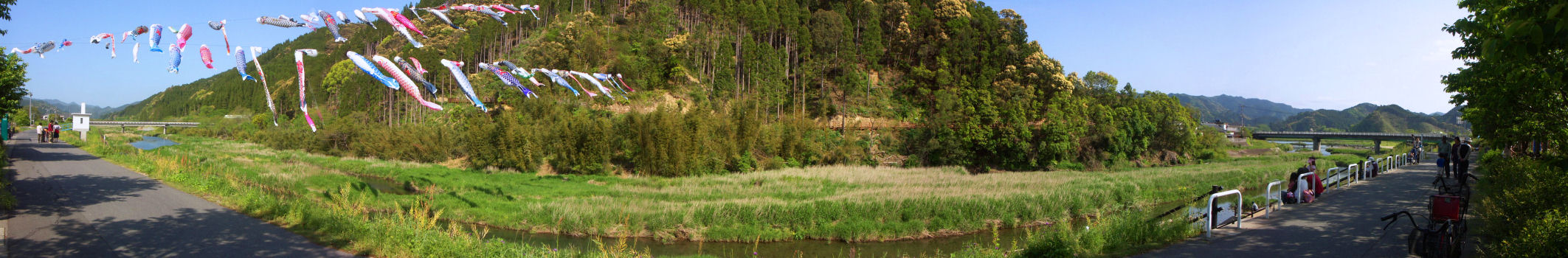 道の駅「やよい」裏の井崎川と鯉のぼり