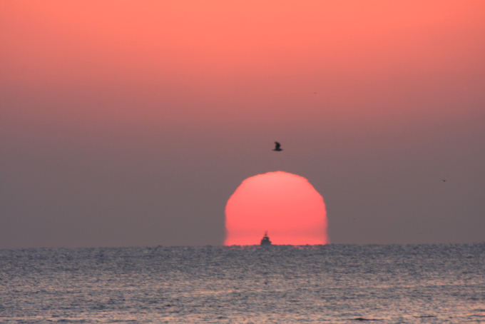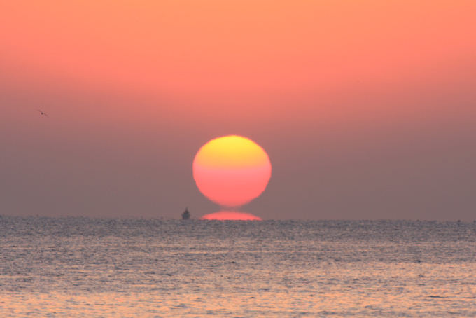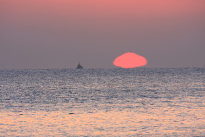 2008年1月6日午前7時10分頃撮影した海から昇る太陽 佐伯市米水津にて撮影