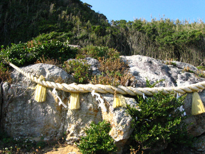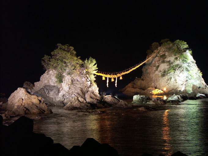 ライトアップされた豊後二見ヶ浦の夫婦岩