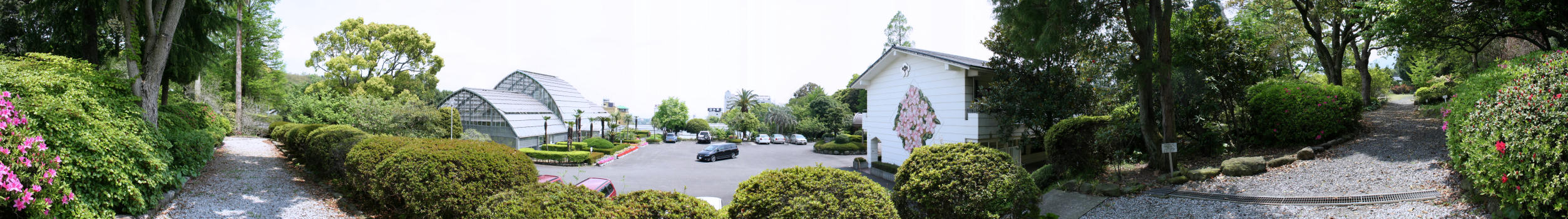 温泉熱を利用した花卉栽培の研究をしている施設です 画面に見えている温室と植物園部分は